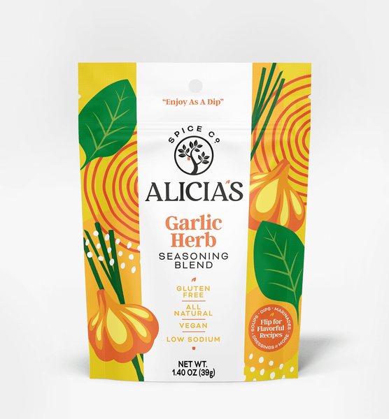 - Combine in bowl EVOO, lime juice, cilantro, red cherry peppers, Alicia’s Spice Co.® Garlic Herb Seasoning Blend, Worcestershire Sauce and water. Mix well and let sit for 15 minutes.